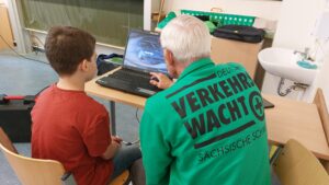 Zusätzlich zu Slalomfahrübungen und Kontrolle zur Verkehrssicherheit der selbst mitgebrachten Fahrräder, gab es Tipps zum richtigen Sitz des Helms und dem korrekten Geben von Handzeichen. Ergänzt wurde das Training durch einen Gefahrenbremstest mit dem Fahrradsimulatur, einem Original Sehtest, wie er für die Fahrerlaubnis abgelegt werden muss und eine Fahrsimulation in echten Verkehrssituationen, bei welcher rechtzeitiges und richtiges Handeln gefragt war. Im geschützten Raum konnten Alle intensiv trainieren, damit sie in Zukunft eigenständige und umsichtige Mobilität genießen können.
