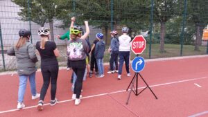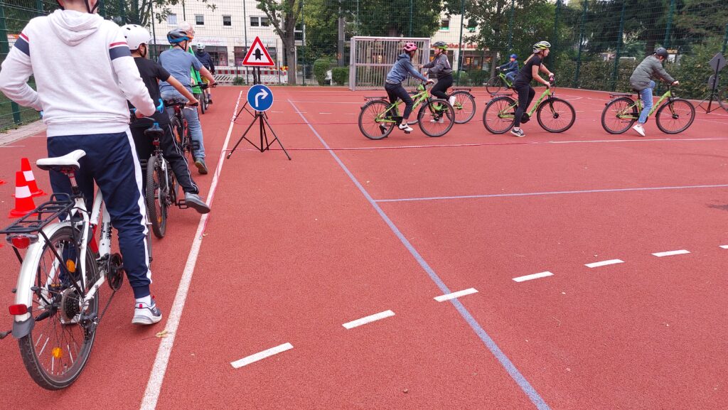 … und bietet das perfekt dosierte Gleichgewicht von Inspiration und Transpiration. Weil uns sehr am Herzen liegt, dass das Radeln für unsere Schülerinnen und Schüler ausschließlich gesundheitsförderlich ist, sorgten wir dafür, dass unsere 6.Klässler mit der Deutschen Verkehrswacht Sächsische Schweiz ein theoretisches und praktisches Fahrradtraining absolvieren durften. Nicht nur die wichtigsten Verkehrsschilder, Vorfahrtsregeln und das korrekte Verhalten im Straßenverkehr lernten die Schüler kennen und vertiefen, sie durften diese auch direkt praktisch ausprobieren. Dazu verwandelte sich unser Schulhof in einen Verkehrsgarten mit Baustelle, Stoppschild, Kreuzungen und Richtungsweisenden Schildern.