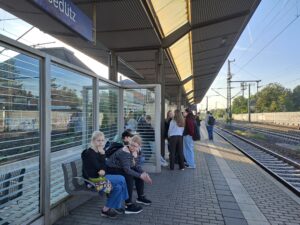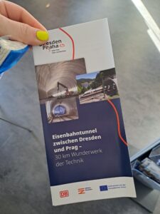 Mit dem Zug ging es ganz passend nach Heidenau. Dort erhielten wir eine sehr interessante Führung vom Informationszentrum zur geplanten Schnellfahrstrecke Dresden–Prag. Wir erfuhren, dass zwischen Heidenau und Chabařovice in Tschechien ein großer Basistunnel durch das Erzgebirge entstehen soll. Dieser Erzgebirgstunnel wird etwa 30 Kilometer lang sein, rund 18 Kilometer auf deutscher Seite und etwa 12 Kilometer in Tschechien. Damit wird er nach der Fertigstellung der längste Eisenbahntunnel Deutschlands. Auf der neuen Hochgeschwindigkeitsstrecke sollen die Züge später mit bis zu 320 km/h fahren. Die Fahrzeit zwischen Dresden und Prag soll so von heute ungefähr zweieinhalb Stunden auf etwa eine Stunde verkürzt werden. Der Bau des ersten Abschnitts könnte ab 2027 beginnen.