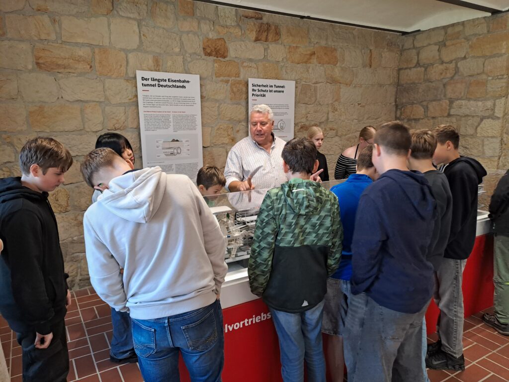 Besonders beeindruckt hat uns im Keller des Zentrums die riesige Tunnelvortriebsmaschine, mit der der Erzgebirgstunnel einmal gebohrt werden soll. Ein weiteres Highlight bildete eine natürliche Grotte, in der es das ganze Jahr über konstant rund 14 Grad kühl bleibt.