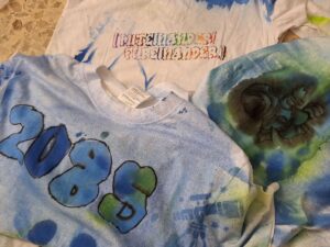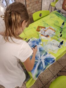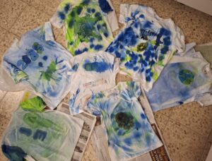 Im Schulclub und während der Klassentrainings schafften sich unsere Schülerinnen und Schüler tolle Erinnerungsstücke. Nach unserem Motto: „Miteinander, Füreinander!“ gestalteten, bemalten und besprühten die Kinder T-Shirts ganz individuell in unseren Schulfarben als gemeinsame Klassenaktion, die alle noch ein Stückchen weiter zusammen gebracht hat. Ob beim Zwirbeln, wie beim Batiken, um lustige Drehmuster zu erhalten, oder mit Schablonen für Zahlen und Zeichen wurde sich kreativ ausgelebt und ganz nebenbei eine bleibende Erinnerung an die Schulzeit geschaffen. In diesem bunten Durcheinander wurde ordentlich geklotzt und gekleckert und hatten alle ganz viel Spaß. Die Ergebnisse können sich absolut sehen lassen. Klasse gemacht, liebe 5b!