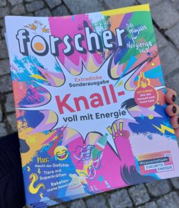 Das ehemalige Kraftwerk, in dem sich das tjg. befindet, ist Ausgangspunkt für ein Spielformat, um sich im Rahmen des Wissenschaftsjahres 2025 — Zukunftsenergie des Bundesministeriums für Forschung, Technologie und Raumfahrt (BMFTR) mit Technologien der Energiegewinnung, den komplexen Systemen der Energiewende und der persönlichen Teilhabe zu beschäftigen. So soll die Umwelt als eine selbst gestaltbare, erlebbar gemacht werden. Dazu gab es auch noch ein Forschermagazin für Neugierige – knallvoll mit Energie zum mit nach Hause nehmen und weiter forschen.