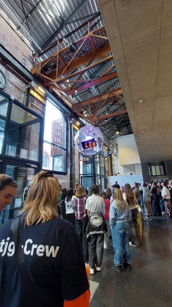 Außerdem lernten wir, dass ein Kraftwerk mehr ist, als nur ein Gebäude, nämlich ein Organismus aus Leitungen, Turbinen und Ideen. Im Zentrum steht die Ideenbatterie, ein Hochleistungsspeicher für die Energiekonzepte von morgen. Normalerweise ist es ein Ort pulsierender Betriebsamkeit, aber jetzt herrscht Stille. Drei Ratten haben die Kabel durchgebissen und das System lahmgelegt. Um das Ganze zu vertuschen, wenden sie sich hilfesuchend an die Forschergruppen unserer Schülerinnen und Schüler. Alle müssen mitmachen, um die Ratten bei einem Systemneustart zu unterstützen. Mit Kopfhörern schickten sie uns auf eine Reise durch das Kraftwerk und auf der Suche nach den nötigen Insider-Informationen rund um das Thema Zukunftsenergie.